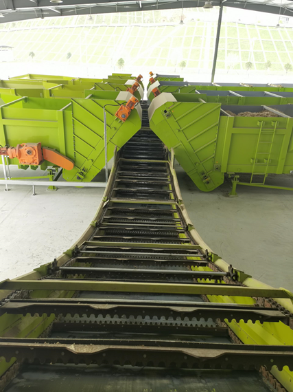 國(guó)科品牌自主設(shè)計(jì)研發(fā)的刮板輸送機(jī)系統(tǒng),將粗飼料倉(cāng)中各種類(lèi)型的飼料集中提升至二級(jí)輸送線(xiàn)中,并根據(jù)控制系統(tǒng)的操控,進(jìn)入預(yù)定TMR設(shè)備中進(jìn)行攪拌。