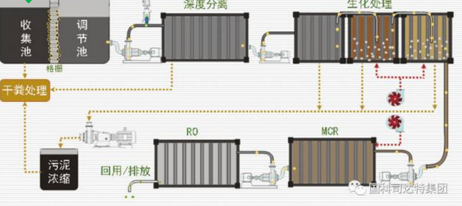 ⊙模塊式組合: 多層固液分離、生化處理、生物膜法、反滲透膜法;