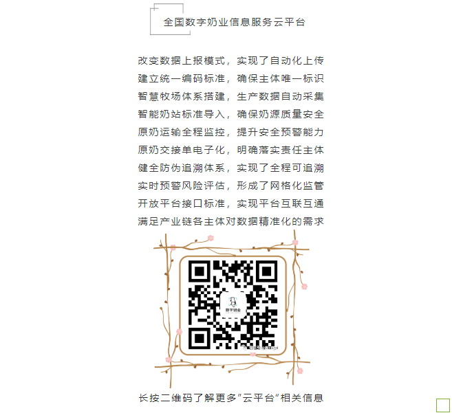 近年來(lái),我國(guó)奶業(yè)以質(zhì)量安全為核心,以監(jiān)測(cè)監(jiān)管一體化為目標(biāo),逐步建立起來(lái)一整套的行業(yè)大數(shù)據(jù)平臺(tái)和質(zhì)量監(jiān)管體系,為提升中國(guó)奶業(yè)競(jìng)爭(zhēng)力和質(zhì)量安全起到了重要的作用。