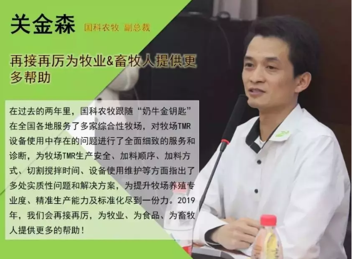 5月19號(hào)上午,以“合作、發(fā)展、共贏、振興”為主題的,“首屆中國奶農(nóng)節(jié)暨奶牛金鑰匙十周年大會(huì)”在北京拉開序幕。十年間“奶牛金鑰匙”活躍在奶業(yè)技術(shù)研發(fā)與轉(zhuǎn)化應(yīng)用的第一線,并針對(duì)不同學(xué)習(xí)對(duì)象推出了特色鮮明的四個(gè)推廣培訓(xùn)模塊,涵蓋現(xiàn)場(chǎng)診斷、晝會(huì)技術(shù)報(bào)告、晚會(huì)技術(shù)沙龍、答疑解惑,讓參加學(xué)習(xí)的學(xué)員在兩天學(xué)習(xí)中獲得更多技術(shù)和信息,幫助奶農(nóng)解決養(yǎng)殖中的各項(xiàng)問題。國科農(nóng)牧跟隨”金鑰匙“一起承托起產(chǎn)業(yè)技術(shù)推廣的最后“一公里”,為我國奶牛養(yǎng)殖業(yè)的科技進(jìn)步、人才培養(yǎng)、技術(shù)培訓(xùn)和產(chǎn)業(yè)升級(jí)做出了突出貢獻(xiàn)。