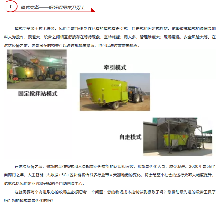 全自動(dòng)能化飼喂中心系統(tǒng)不僅可以在新建萬(wàn)頭牧場(chǎng)及大型攪拌站安裝和使用,老舊牧場(chǎng)的TMR也可在原有基礎(chǔ)上做整體升級(jí)改造,或進(jìn)行局部模塊化以、智能化升級(jí)改造。