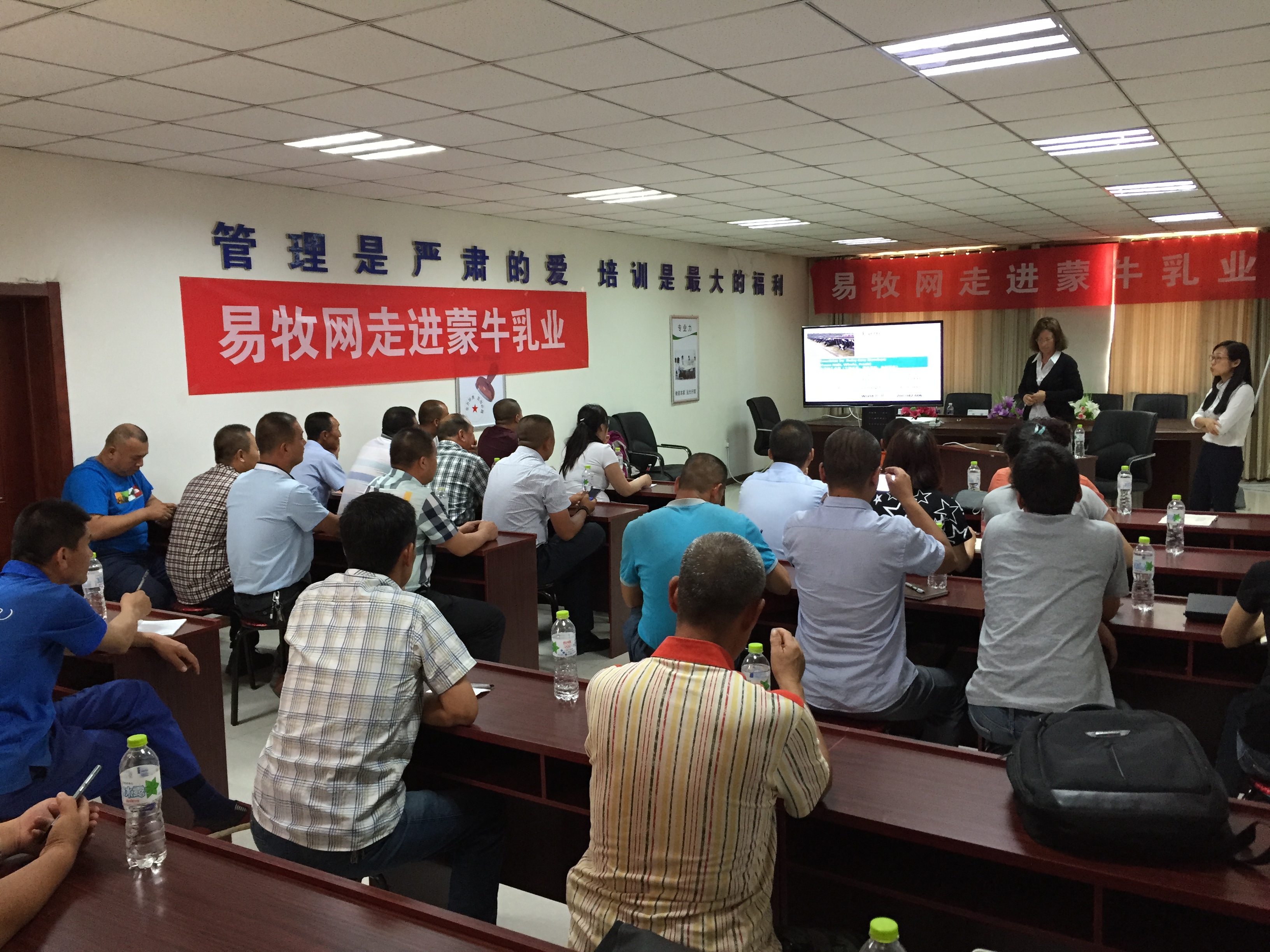 上圖 安德瑞爾博士(左一,翻譯:袁珍其經(jīng)理,右一)在蒙牛培訓(xùn)場景