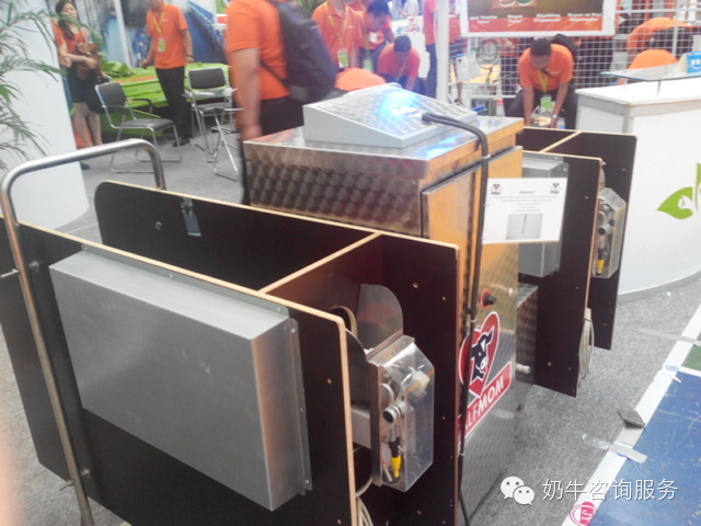 自動犢牛喂養(yǎng)器由一臺設備齊全的裝置組成,該裝置可以將水加熱、分配預定量的代乳品、并在一個容器中將代乳品和水進行混合,通過一個奶嘴喂養(yǎng)站,犢??梢运蔽萜鲀鹊娜橹破?。在美國,有許多公司銷售具有各種計算機軟件選項的自動犢牛喂養(yǎng)器。