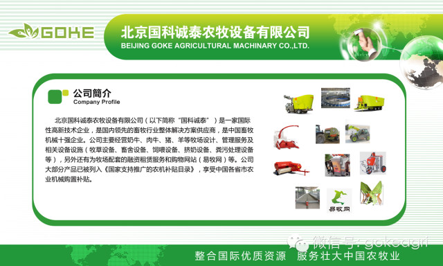 在組織形式上,要求我們能夠為客戶整合優(yōu)質(zhì)資源,服務(wù)壯大中國的畜牧業(yè),成為這個組織中的重要合作伙伴。我們在以下4 個方面可以提供服務(wù):一、第三方的外包服務(wù),為擠奶機(jī)、TMR車提供第三方的運(yùn)營監(jiān)測報告。我們還推動了管理細(xì)節(jié)的實物化,如快速修牛尾毛,提高了牧場的效率;二、啟動了易牧網(wǎng),通過透明、公開的交易平臺,為牧場節(jié)約成本;三、推動了智慧型的牧場。如新型的擠奶機(jī)、飼料飼喂系統(tǒng)、犢牛飼喂機(jī)等;四、糞污設(shè)備化,集裝箱式的智能處理,實現(xiàn)糞污的達(dá)標(biāo)排放。而且全牧場實行一個計算機(jī)管理,牧場管理人員可以從繁重的勞動中脫離出來,集中精力關(guān)注牛;集裝箱式的糞污處理方式也進(jìn)入了金融界的視野,國外不同的融資租賃公司已經(jīng)在和我們的客戶聯(lián)系,使得糞污的建設(shè)項目可以變成融資租賃的標(biāo)的物,享受5年期的低息長期的貸款。