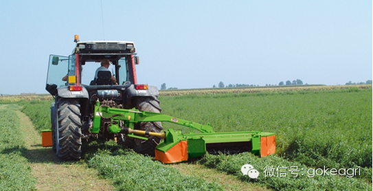 圖 10 圓盤割草機(jī),工作寬幅可達(dá)2.38米,同時(shí)具有壓扁功能,加快牧草的干燥;