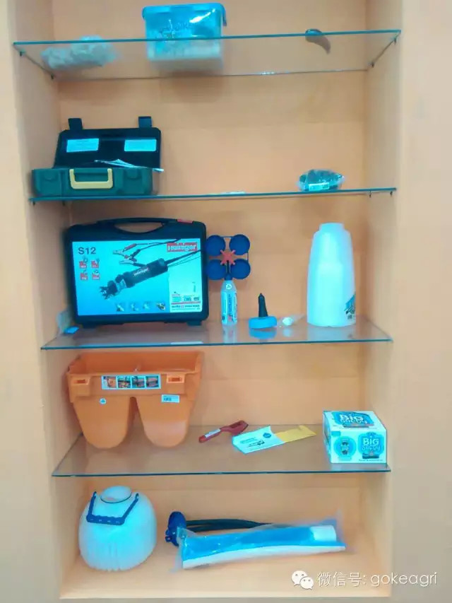 圖 13 易牧網(wǎng)展出了近百種的牧場低耗精品:剃尾機(jī)、喂奶槽、犢牛喂奶壺、八升盛乳罐、護(hù)腿夾板、電動(dòng)修蹄機(jī)等