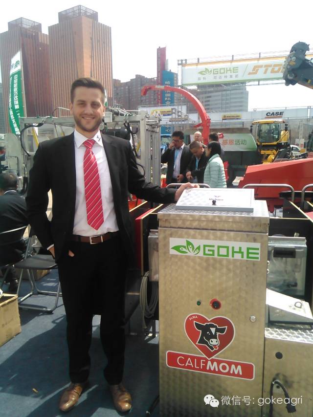 圖 15 歐奔技術(shù)專家馬努爾先生給養(yǎng)殖朋友們介紹犢牛自動(dòng)喂奶機(jī)的優(yōu)良性能,不銹鋼器具,犢牛自動(dòng)識(shí)別,電腦操控飼喂量,并有可清洗、可加熱等多種選項(xiàng)。勞產(chǎn)率低、犢牛成活率高、轉(zhuǎn)群頭胎產(chǎn)奶量高15%。
